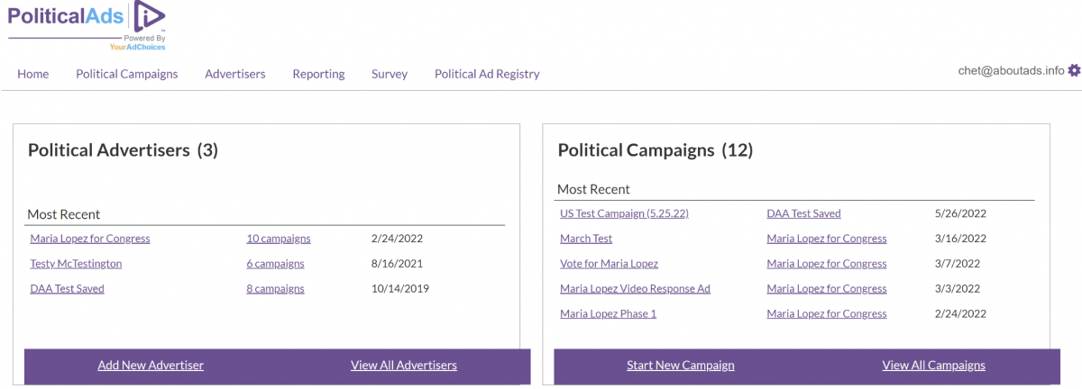Image 3. Inside the DAA Political Ads Platform.